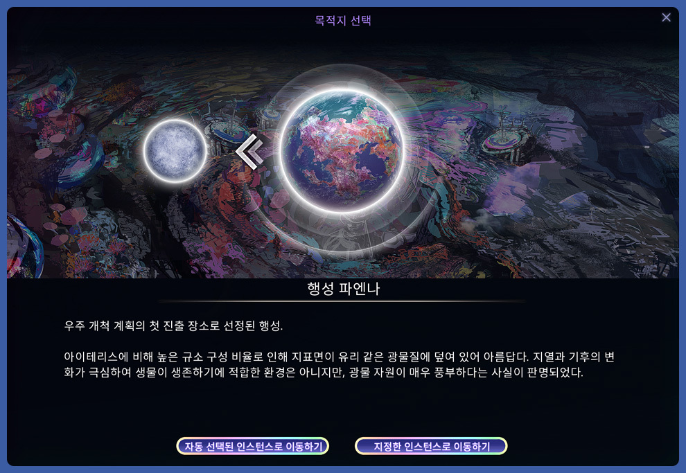 고향 서버에서만 우주 개척 관련 지역으로 이동하거나, 관련 퀘스트를 진행할 수 있습니다.