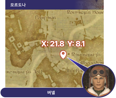 부가 퀘스트 ‘숨겨진 에우레카 오르토스’새창를 개방 후, 망자의 종소리의 에테라이트 부근 (X:21.8 Y:8.1)에 있는 NPC ‘버넬’에게 말을 걸면 에우레카 오르토스 입구 부근까지 간단히 이동할 수 있습니다.