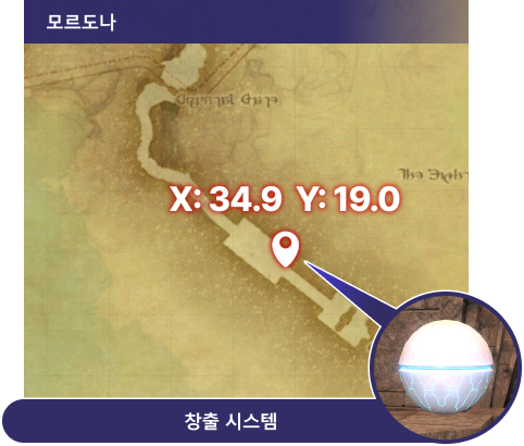 ‘오르토스 마기 파편’새창을 획득할 수 있습니다. 이 아이템은 모르도나(X:34.9 Y:19.0)에 있는 NPC ‘창출 시스템’새창을 통해 아이템과 교환할 수 있습니다.