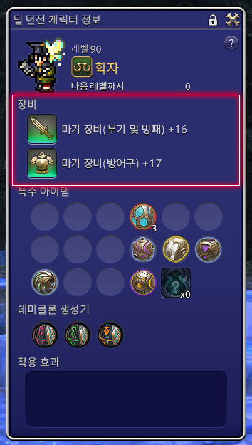 이때 마기 장비라고 불리는 딥 던전 전용 장비와 마과학기, 데미클론이라는 특수 아이템이 도전을 지원해 줍니다.
