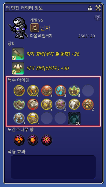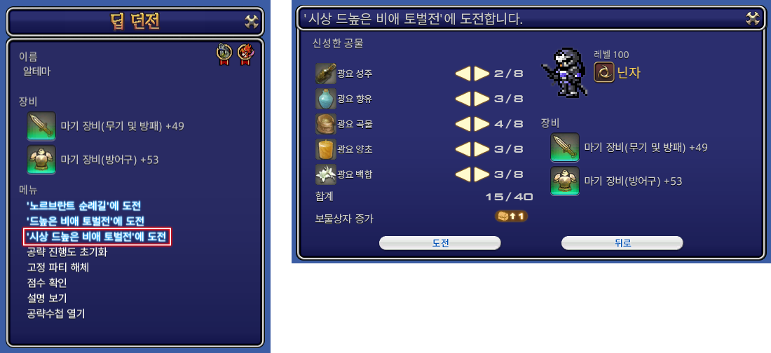 이때 마기 장비라고 불리는 딥 던전 전용 장비와 마토기, 노간주나무 향이라는 특수 아이템이 도전을 지원해 줍니다.